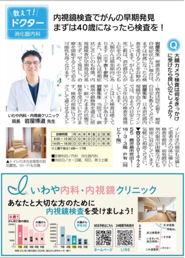 鹿児島市荒田のいわや内科・内視鏡クリニック|内科・消化器内科・内視鏡内科