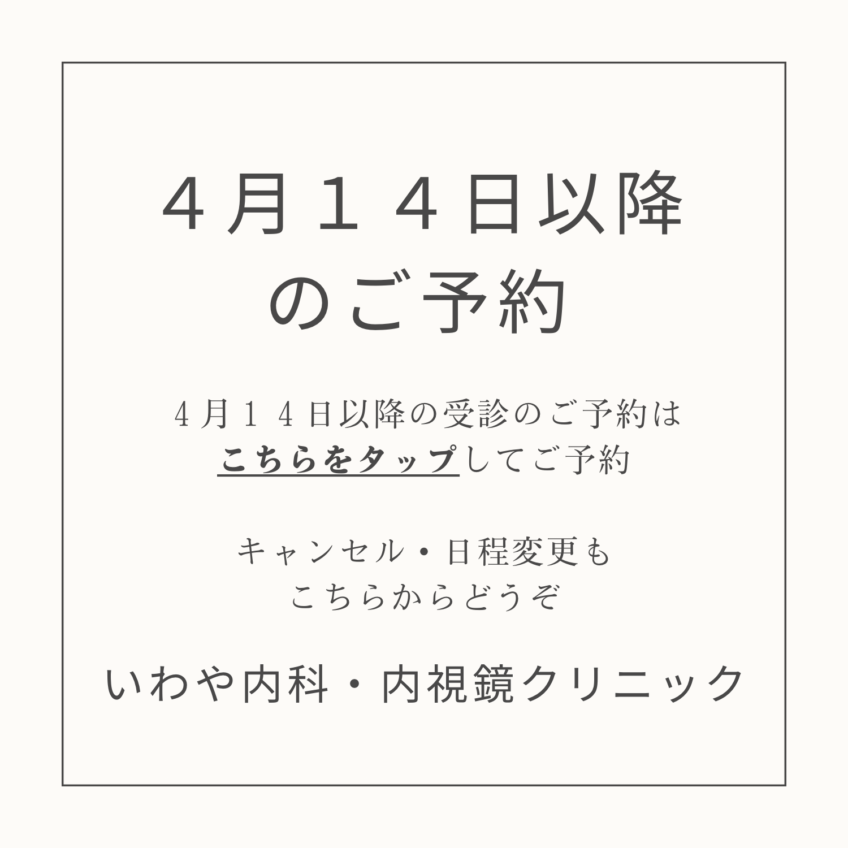 4月14日以降、旧システム([<旧>いわや内科・内視鏡クリニック WEB予約])からのご予約・変更はできません。